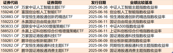 目前有7只ETF披露下周发行,跟踪标的为国证港股通消费、恒生港股通消费、创业板新能源等。
